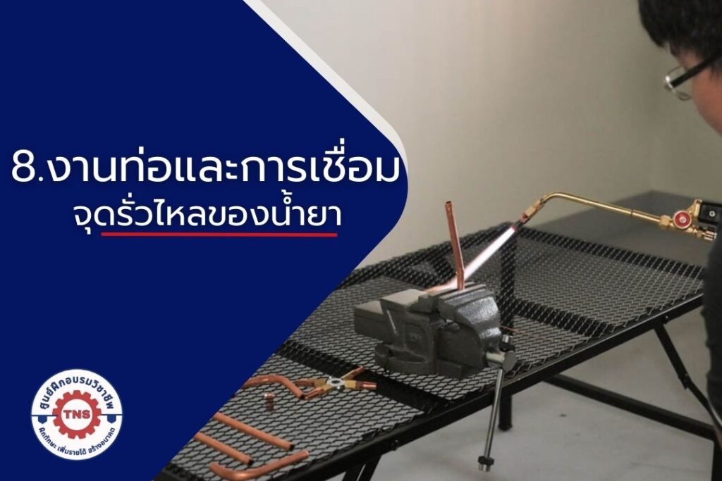 เวลาที่ช่างแอร์ทุกท่านตรวจสอบน้ำยาแอร์และพบว่าน้ำยาแอร์ขาดนั้น สาเหตุหลักๆจะรั่วจากจุดต่อของท่อ เช่นจุดที่ช่างทุกท่านบานแฟร์เพื่อเข้าท่อ และอุปกรณ์ต่างๆ ดังนั้นการเชื่อม และการบานแฟร์จึงสำคัญมาก ในการติดตั้งแอร์ให้ลูกค้า ซึ่งการตรวจสอบการรั่วไหลของน้ำยาแอร์จากท่อคือการทดสอบโดยการใช้สุญญากาศในการทดสอบ หากช่างทุกท่านทำให้ระบบเป็นสูญญากาศแล้วปล่อยไว้สักพักพบว่า เกจตีขึ้นหมายความว่าท่อที่ช่างทุกท่านต่อนั้นรั่วแน่นอน
