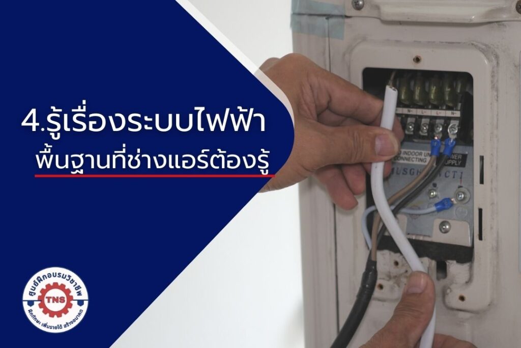 ความรู้เบื้องต้นของช่างทุกท่านคือระบบไฟฟ้า จำเป็นต้องอ่านสัญลักษณ์การต่อวงจร และเลือกใช้ขนาดสายไฟที่มาใช้ได้ถูกต้อง รวมถึงความหมายของสีของสายไฟที่ช่างทุกท่านเลือกใช้ โดยขนาดสายไฟส่วนมากที่ผู้ผลิตแอร์กำหนด แอร์ขนาด 9,000 BTU ใช้สายไฟ 2.5 ตร.มม. / แอร์ขนาด 12,000 BTU ใช้สายไฟ 4 ตร.มม. / แอร์ขนาด 18,000 BTU ใช้สายไฟ 6 ตร.มม. เป็นต้น
